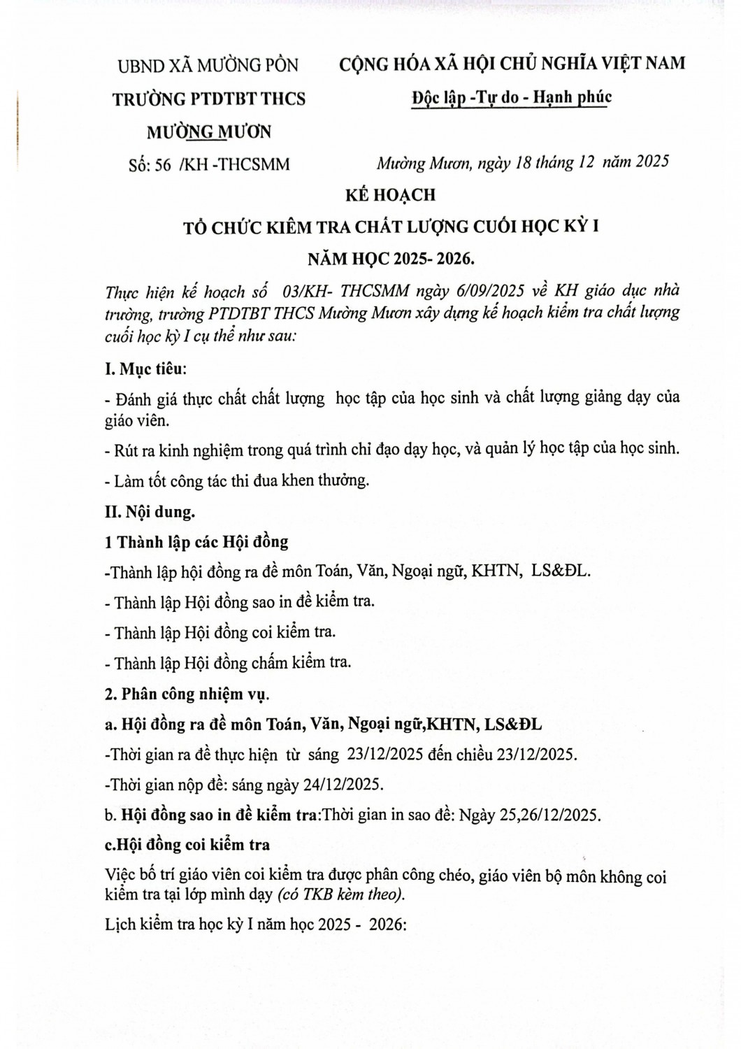 TRƯỜNG PTDTBT THCS MƯỜNG MƯƠN KHAI XUÂN ẤT TỴ 2025