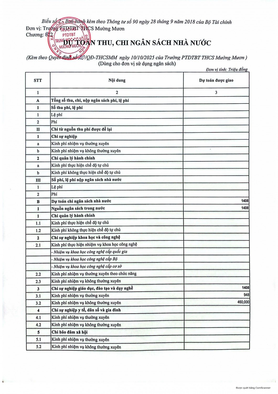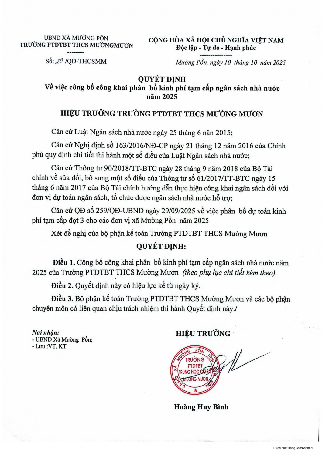 QUYẾT ĐỊNH Số: 20 /QĐ-THCSMM -Về việc công bố công khai phân bổ kinh phí tạm cấp ngân sách nhà nước năm 2025
